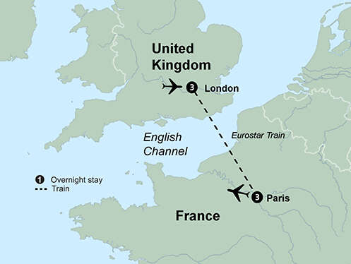 Enjoy the best of London and Paris on this leisurely tour. All of the top sights are included, as well as plenty of free time for your own discoveries. See Trafalgar Square, the Tower of London and Big Ben. Personalize your trip to London by choosing to visit either Churchill’s War Rooms or Westminster Abbey. Cross the English Channel on the high-speed Eurostar Train. Dine at the Eiffel Tower and cruise the River Seine at night. Come to know Paris in your own way: with a local guide by coach or by Metro. Enjoy a thrilling dinner and cabaret show at the Paradis Latin Cabaret.